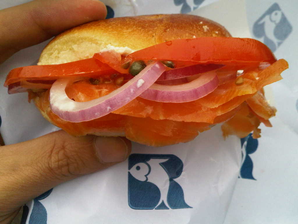 Russ & Daughters Scottish salmon on a bagel with all the trimmings