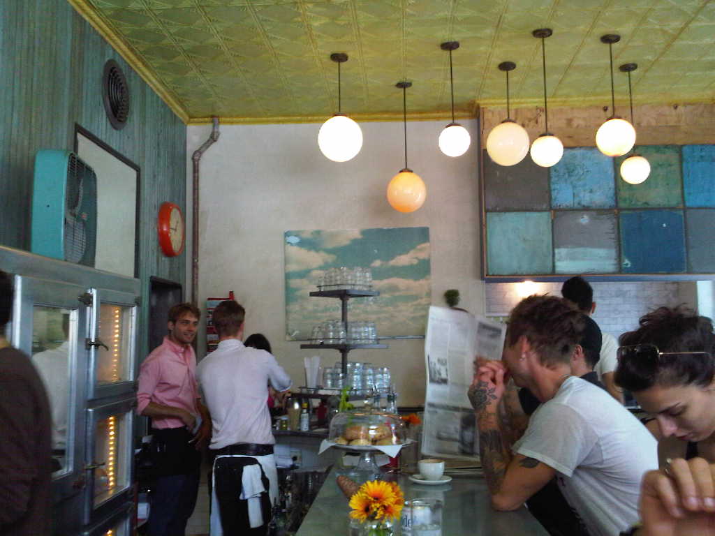 The tomato, basil, avocado, & goat cheese omelette was lovely, and they have sourdough bread and an excellent bloody mary. On Berry and N 9th.
