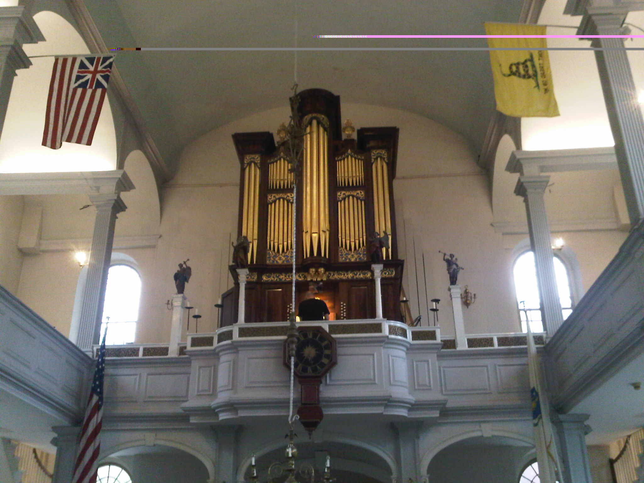 Inside the Old North Church where Paul Revere’s signal lantern was hung in 1775